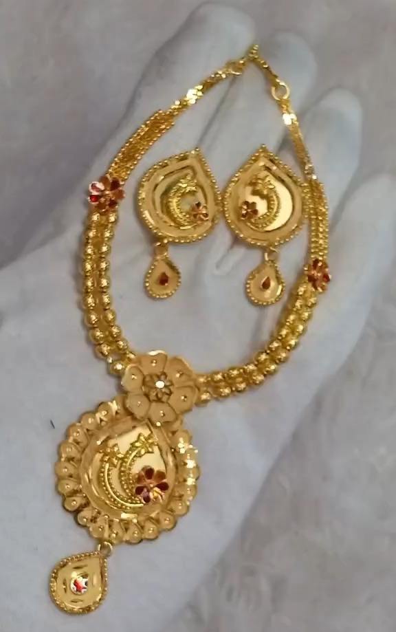 ชุดสร้อยคอชุบทอง1กรัมสำหรับผู้หญิงชุดสร้อยคอหรูแบบดั้งเดิมคุณภาพสูงเหมาะสำหรับงานแต่งงานโอกาสพิเศษ