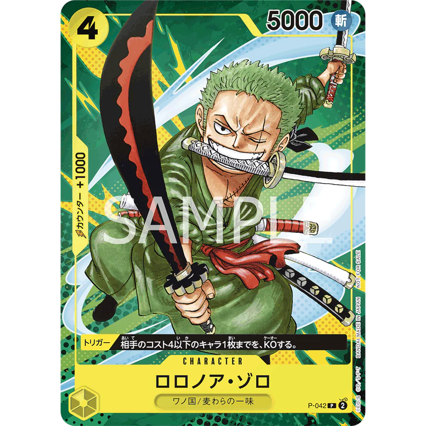 การ์ดเกมวันพีซ ฉบับญี่ปุ่น โรโรโนอา โซโล P-042 ผลิตจากวัสดุกระดาษที่ทนทาน