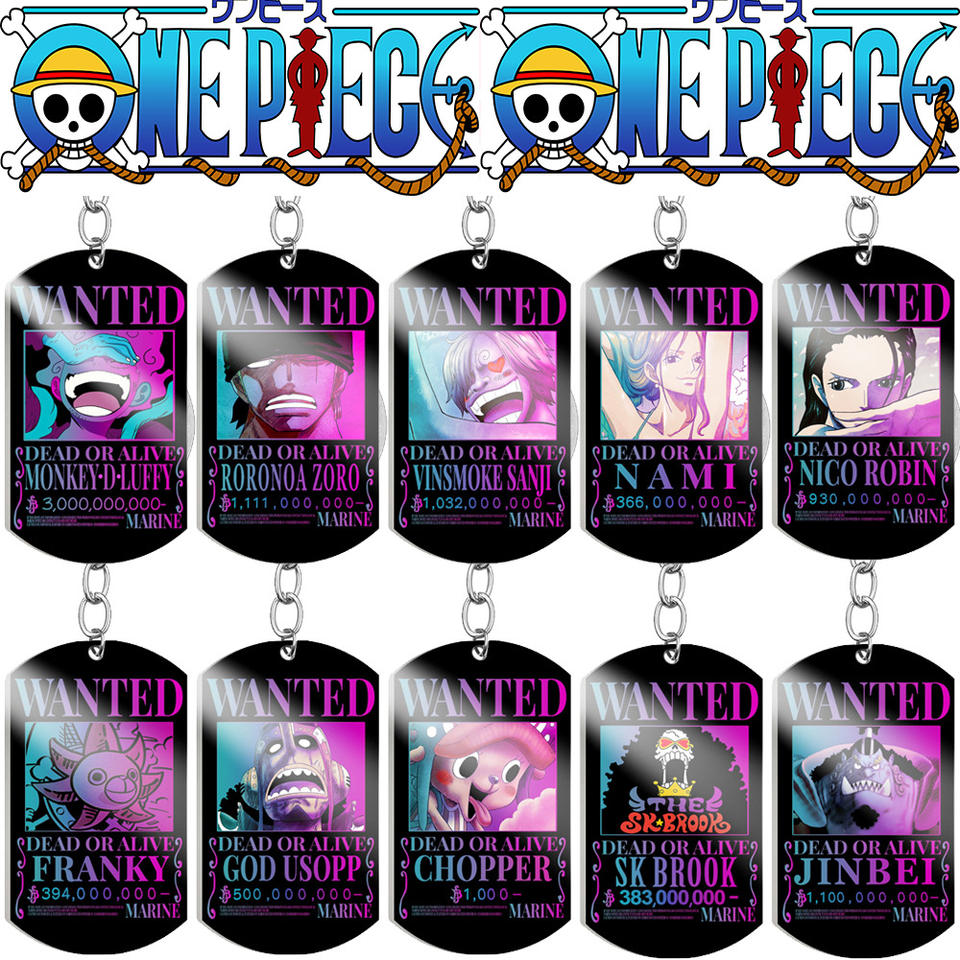 พวงกุญแจสแตนเลสสตีลพิมพ์ลายสี วันพีซ คิง นาวิเกชั่น ลูฟี่ 3 พันล้าน บัตรหมายจ้าง พระอาทิตย์ นิกะ