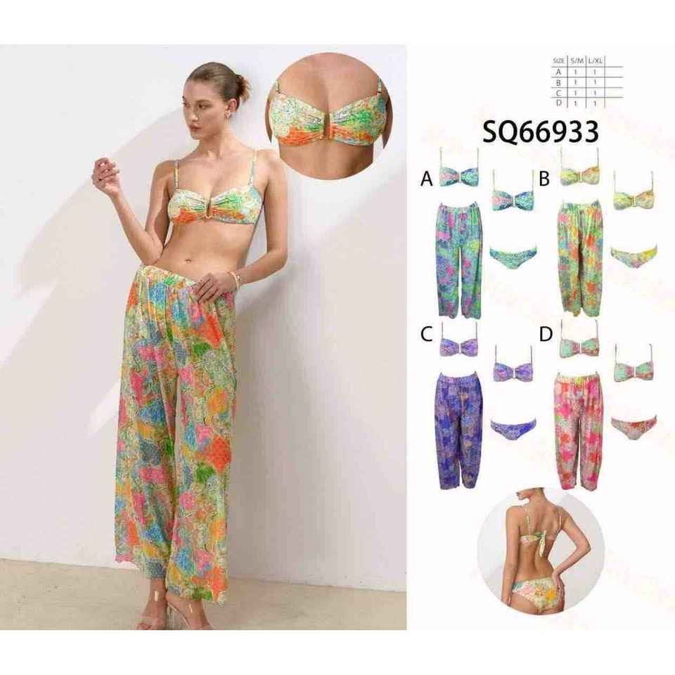 ชุดบิกินี่แบบมีฟองน้ำเสริมทรง สายผูกคอ ชุดว่ายน้ำสองชิ้นสำหรับฤดูร้อน ชุดชายหาด เสื้อชั้นในแบบผูกข้าง กางเกงเอวสูง ไซส์ S-XL ขายส่ง SQ66933