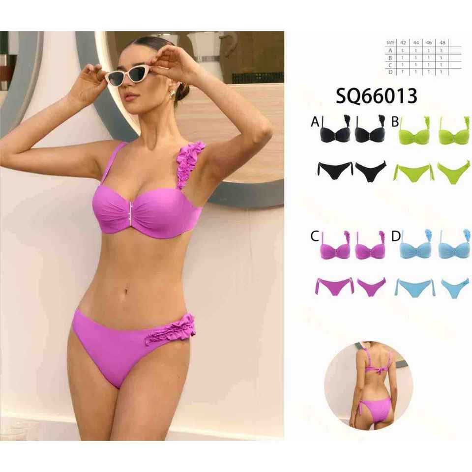 ชุดบิกินี่ทรงสามเหลี่ยมสำหรับผู้หญิง ชุดว่ายน้ำสองชิ้นสำหรับฤดูร้อน ชุดชายหาด เสื้อชั้นในแบบผูกคอ กางเกงเอวสูงผูกข้าง ใหม่ ขายส่ง SQ66013