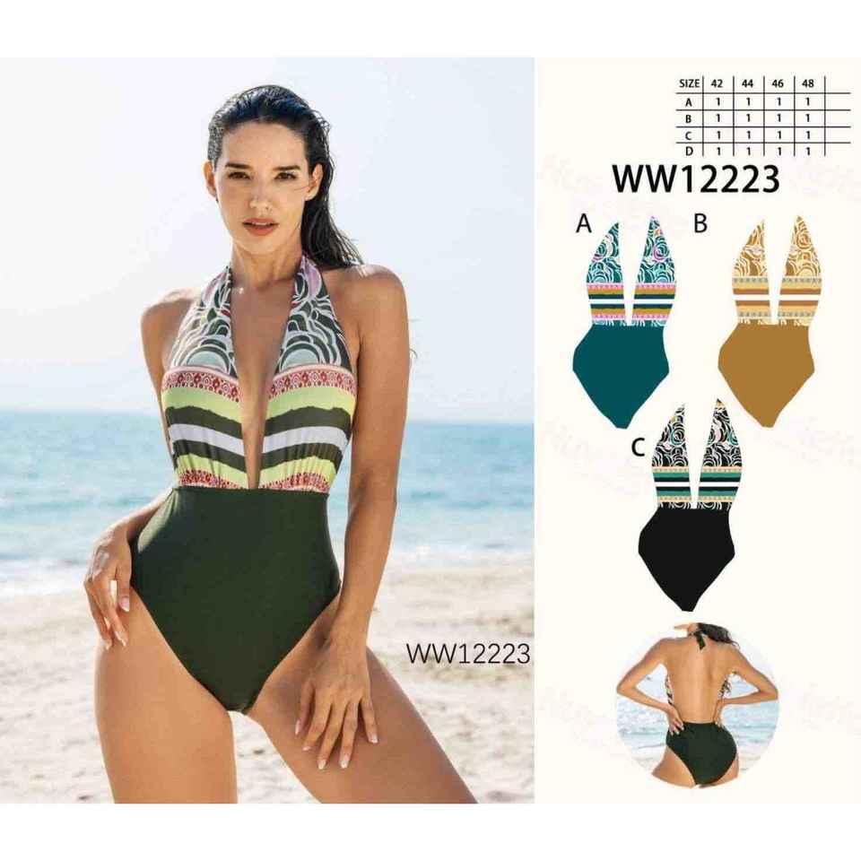 ชุดบิกินี่ลายดอกไม้สำหรับผู้หญิง ชุดว่ายน้ำสองชิ้นสำหรับฤดูร้อน ชุดชายหาด เสื้อชั้นในแบบผูกคอ กางเกงเอวสูงผูกข้าง ไซส์ S-XL ขายส่ง WW12223