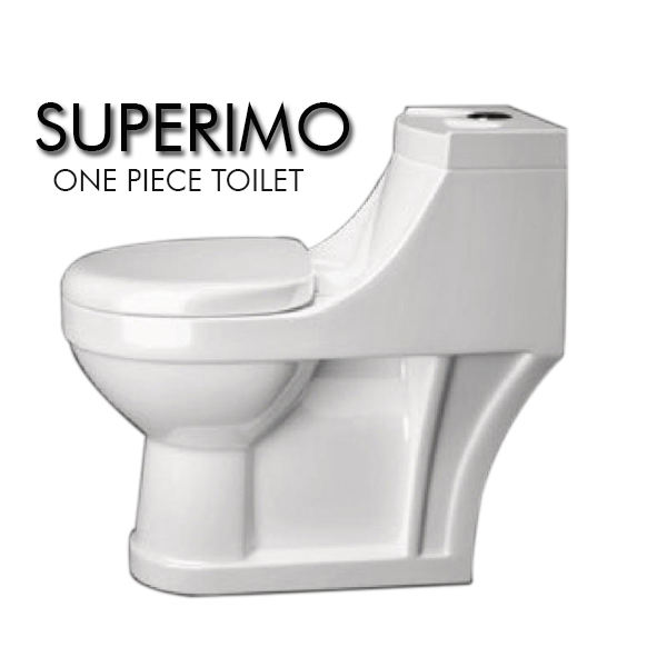 ชุดสุขภัณฑ์ห้องน้ำดีไซน์อุตสาหกรรม One Piece WC Superimo-108 เซรามิกคุณภาพสูง ระบบกดน้ำสองปุ่ม ดีไซน์ P-Trap และ S-Trap ที่เป็นเอกลักษณ์