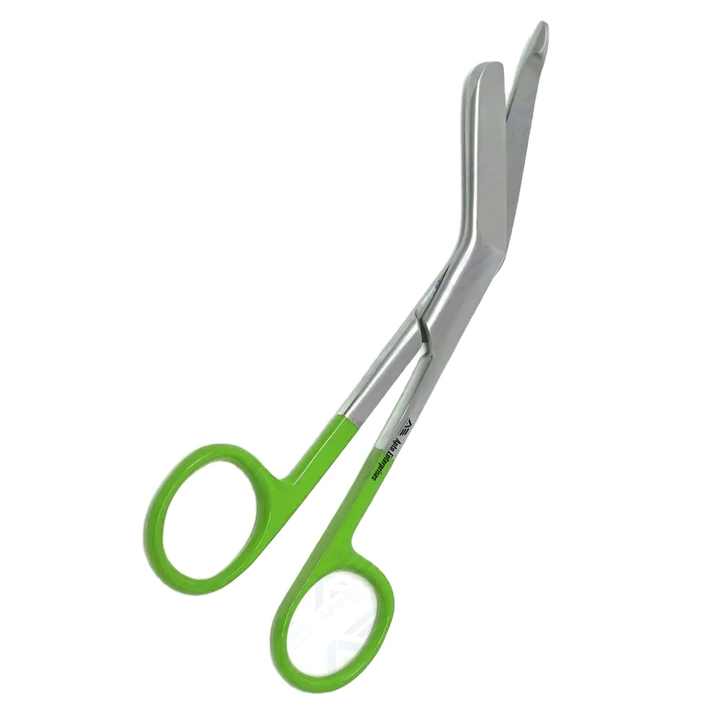 กรรไกรตัดผ้าพันแผลแบบโค้ง Lister Trauma สำหรับแพทย์ ใบมีดหยัก 1 ใบ ตัดพลาสเตอร์ด้วยมือ ทำจากสแตนเลส
