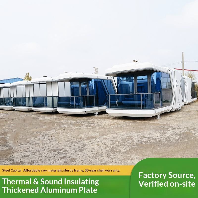 ร้านกาแฟเคลื่อนที่แบบครบวงจร โครงสร้างเหล็กอลูมิเนียม สำหรับฤดูร้อน ใช้งานได้หลากหลาย คาเฟ่ขนาดเล็ก สไตล์แคปซูลอวกาศสุดหรู
