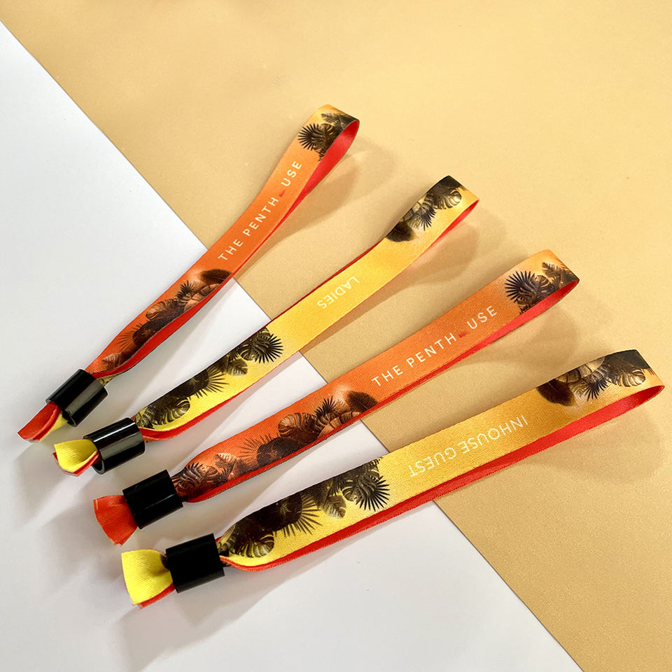 ใช้ครั้งเดียวสายรัดข้อมือพลาสติกล็อค/สายรัดข้อมือผ้าเทศกาล/สายรัดข้อมือโพลีเอสเตอร์ทอสำหรับกิจกรรมสร้อยข้อมือคู่ totwoo