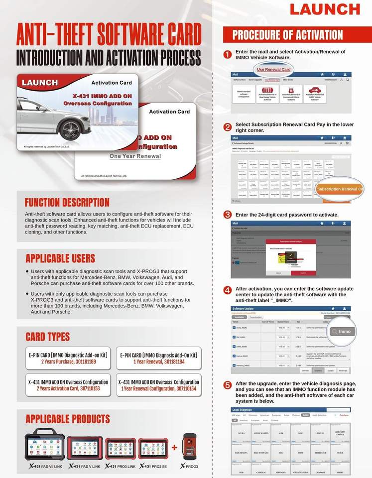 บริการอัปเดตหนึ่งปี ชุดอุปกรณ์วินิจฉัยรถยนต์ไฟฟ้า LAUNCH X431 (เฉพาะการสมัครสมาชิก) เครื่องมือวินิจฉัย X-431 บัตรเปิดใช้งาน EV บัตรต่ออายุการใช้งาน