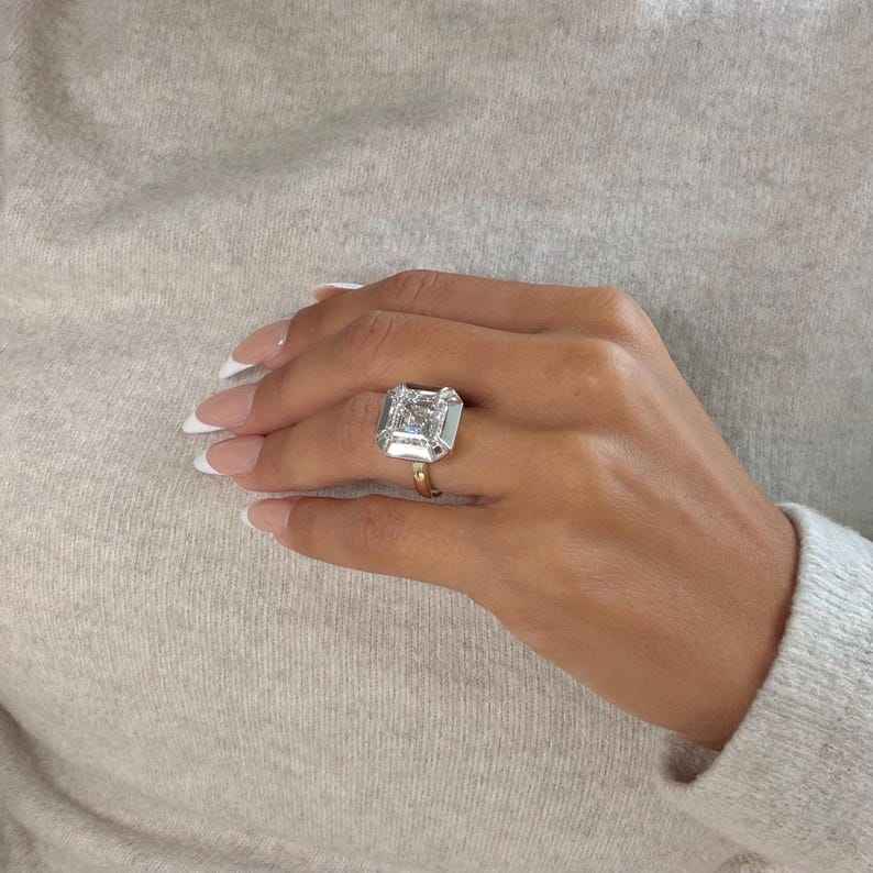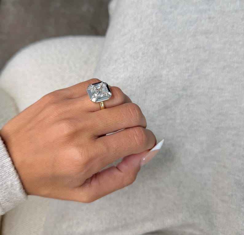 แหวนเพชรโมอิสซาไนต์ทรงแอสเชอร์ 10 กะรัต ดีไซน์เฉพาะตัว ตัวเรือนเงินแท้ 925 ของขวัญแทนใจสำหรับเครื่องประดับสุดพิเศษสำหรับทุกเพศ