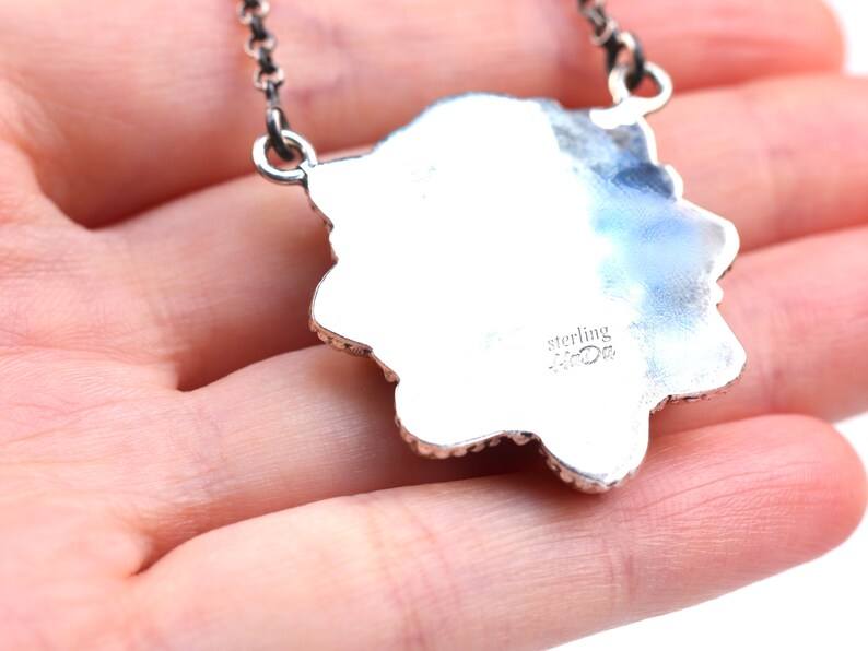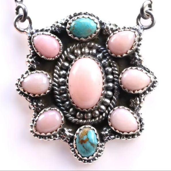 หนึ่งในของชนิดตะวันตกเฉียงใต้เครื่องประดับช่างฝีมือสร้อยคอเงินสเตอริงชุบโรเดียมสีชมพูรูปไข่รวมห่วงโซ่สีฟ้าคราม