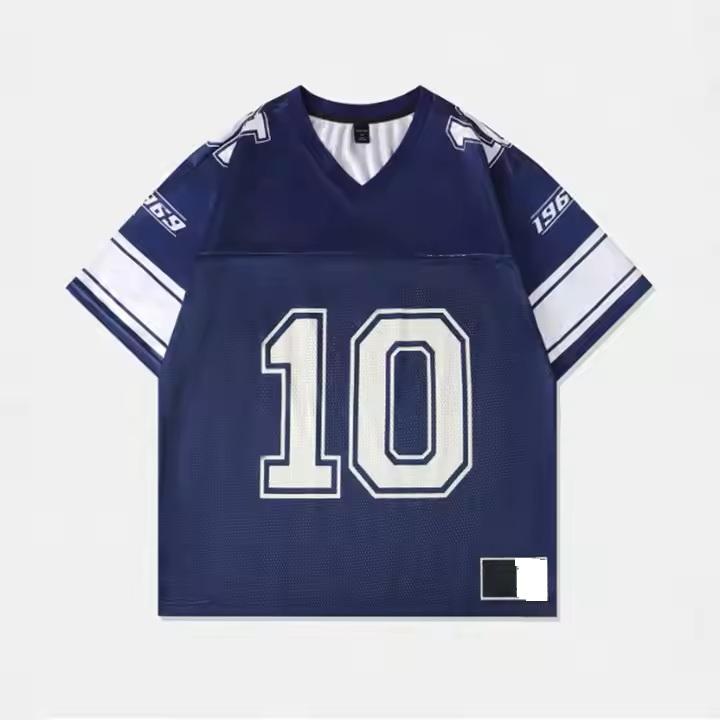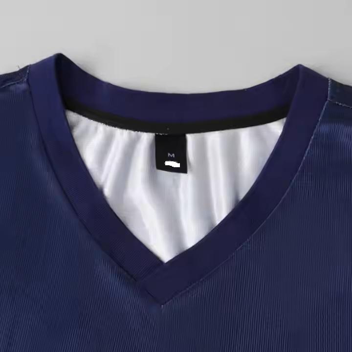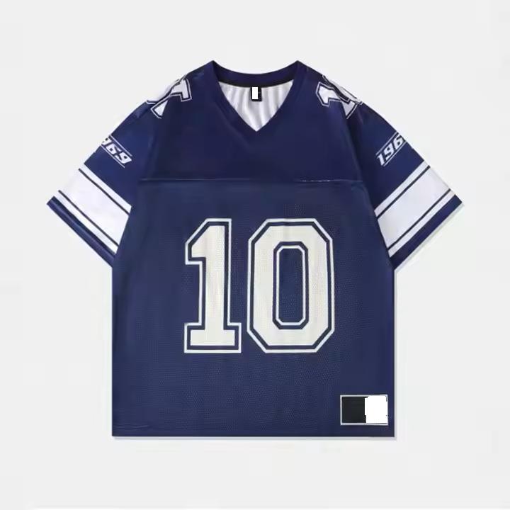เสื้อยืดสตรีทแวร์คอวีระบายอากาศแบบครบวงจรสำหรับผู้ชายเสื้อยืดตาข่ายตัดและเย็บขอบลายแถบ2025