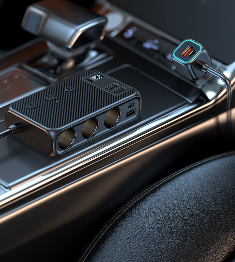 ที่ชาร์จไฟในรถแบบสวิตช์อิสระหนึ่งพ่วงที่ชาร์จไฟในรถยนต์แบบเร็วสองพ่วงสามจุดที่จุดบุหรี่ไฟฟ้า