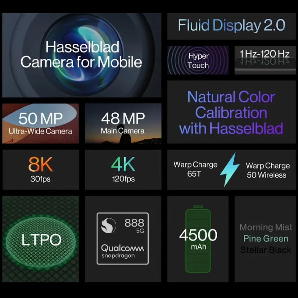 OnePlus 9 Pro สมาร์ทโฟน8GB 128GB, 888 Snapdragon 5G 6.7นิ้ว120Hz จอแสดงผลของเหลว Hasselblad กล้อง50MP มือถือ PH