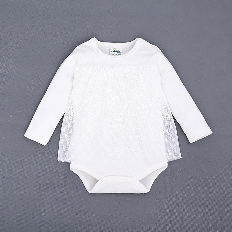 ร้านค้าออนไลน์จีนขายส่งชุดรอมเปอร์ลูกไม้สีพื้นสีขาวชมพูแขนยาวสำหรับเด็กผู้หญิง