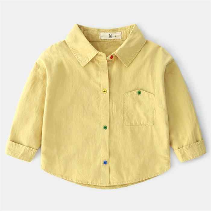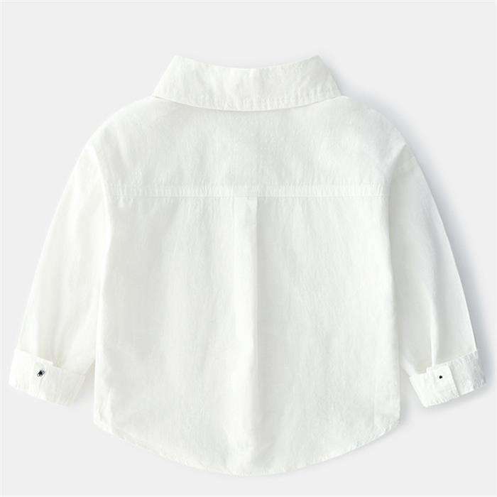 เสื้อเชิ้ตสีขาวเรียบง่ายสำหรับเด็กผู้ชาย เสื้อผ้าเด็ก