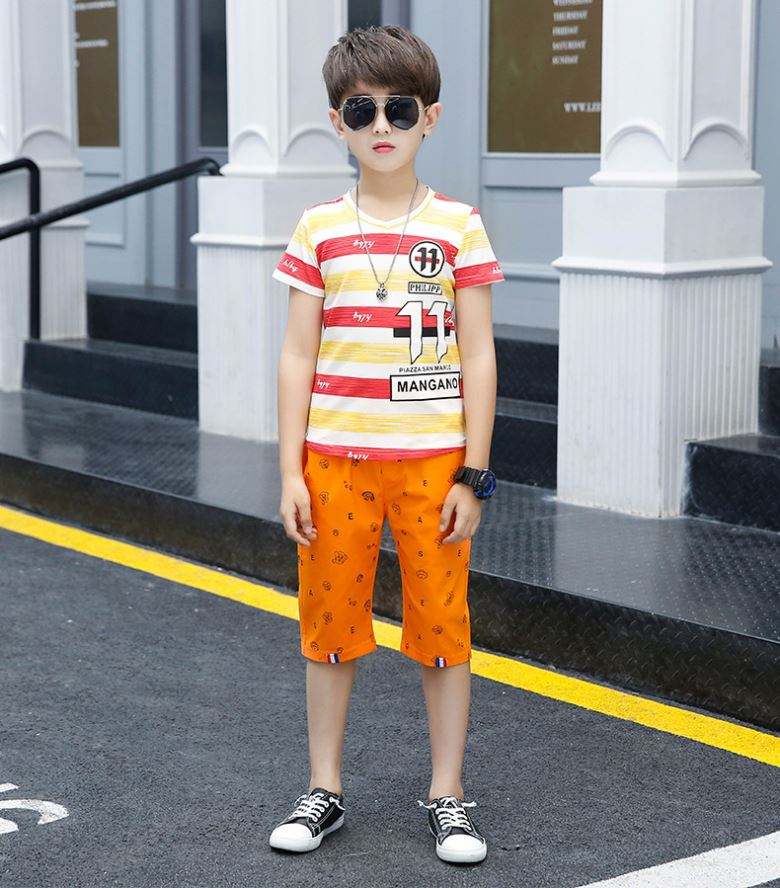 ชุดบอดี้สูทเด็กผู้ชาย แขนสั้น ลายตัวอักษรและลายทาง พร้อมกางเกงขาสั้นพิมพ์ลาย สำหรับเด็กวัยหัดเดิน ซื้อสินค้าออนไลน์