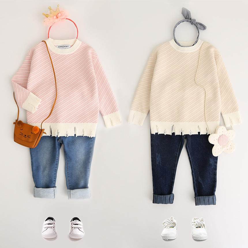 เสื้อสเวตเตอร์เด็กแฟชั่นเกาหลี ลายถัก งานแฮนด์เมด ชายโค้ง สำหรับขายออนไลน์