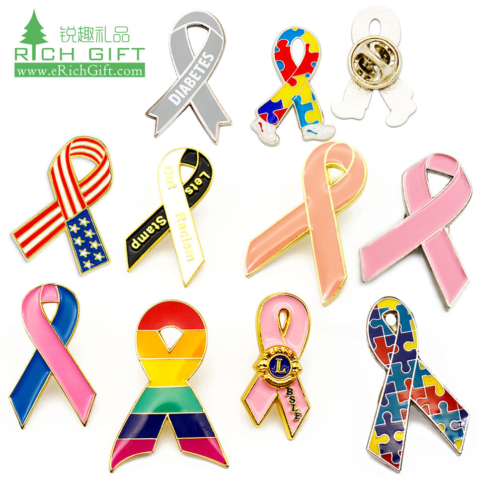 ช้อปปิ้งออนไลน์ที่ไม่ซ้ำกันทองเสร็จสิ้นตายตัดเข็มกลัดโลหะผ้าไหมสีม่วงสีชมพูสีแดงเต้านมมะเร็งริบบิ้นปกป้ายขา