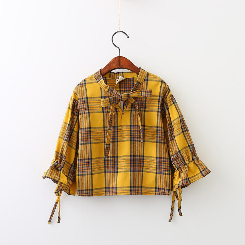 เสื้อแฟชั่นลายสก็อตพร้อมแขนจีบหญิงรูปถ่ายสินค้าใหม่ล่าสุด