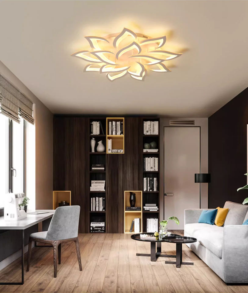 โคมไฟเพดานรูปดอกบัวสีดำขาวสไตล์นอร์ดิกเรียบง่ายสำหรับห้องนั่งเล่นและห้องนอน ดีไซน์ทันสมัย ขายส่งออนไลน์