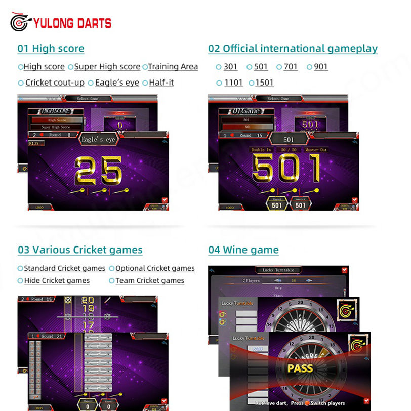 กระดานปาลูกดอกอิเล็กทรอนิกส์แบบหยอดเหรียญ YULONG X-8 รุ่นหรูหรา แบบซอฟต์ทิป เป็นมิตรกับสิ่งแวดล้อม ปรับแต่งได้ สำหรับสวนสนุก
