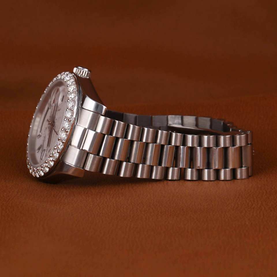 นาฬิกาข้อมือแบบฮิปฮอป ประดับเพชรโมอิสซาไนต์ หน้าปัดสีเขียวมุก ดีไซน์หรูหราแบบใหม่ ขอบตัวเรือนฝังเพชรเต็มวง สำหรับทุกเพศ