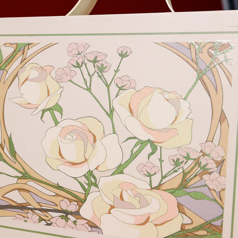 [Only Custom] Internet Celebrity Cartoon Camellia Gift Box Creative Wedding Candy Luxury champagne Color Handheld Rigid Hand Box
