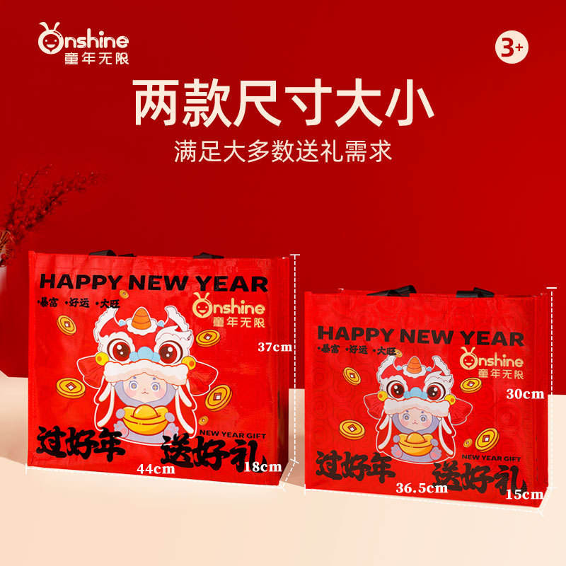 ถุงของขวัญปีใหม่ออนไชน์ขนาดใหญ่ทนทานสำหรับเด็กอายุ 4-6 ปี ดีไซน์สวัสดีปีใหม่