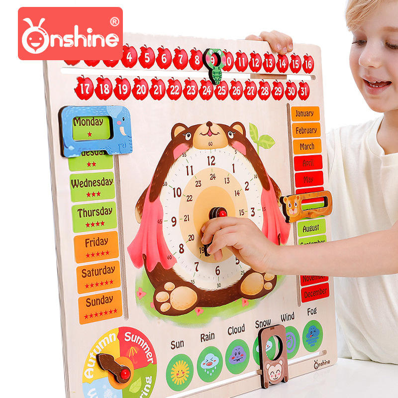 ออนไชน์กระดานไม้สำหรับเด็กเรียนรู้เวลา ปฏิทินสภาพอากาศ ของเล่นเสริมพัฒนาการเด็ก 3-6 ปี