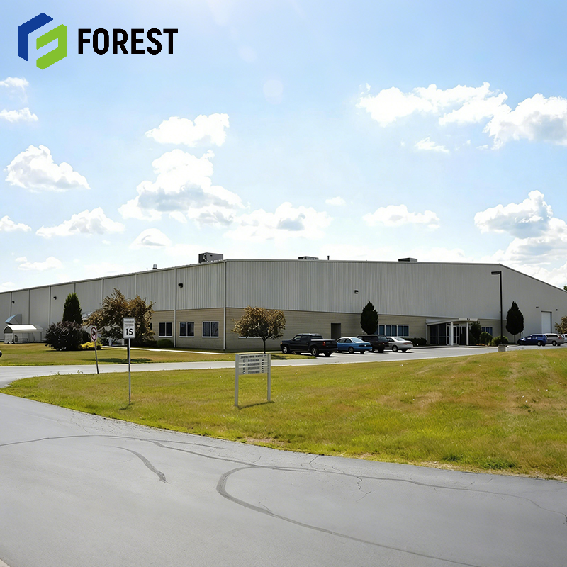 โรงงานสำเร็จรูปโครงสร้างเหล็กหนักดีไซน์ทันสมัยแบบออนแทรีโอ สำหรับโรงงานอุตสาหกรรม โกดังเก็บของ โรงเรียน ห้างสรรพสินค้า โครงเหล็กไอ-บีมแบบเชื่อมด้วยสลักเกลียว