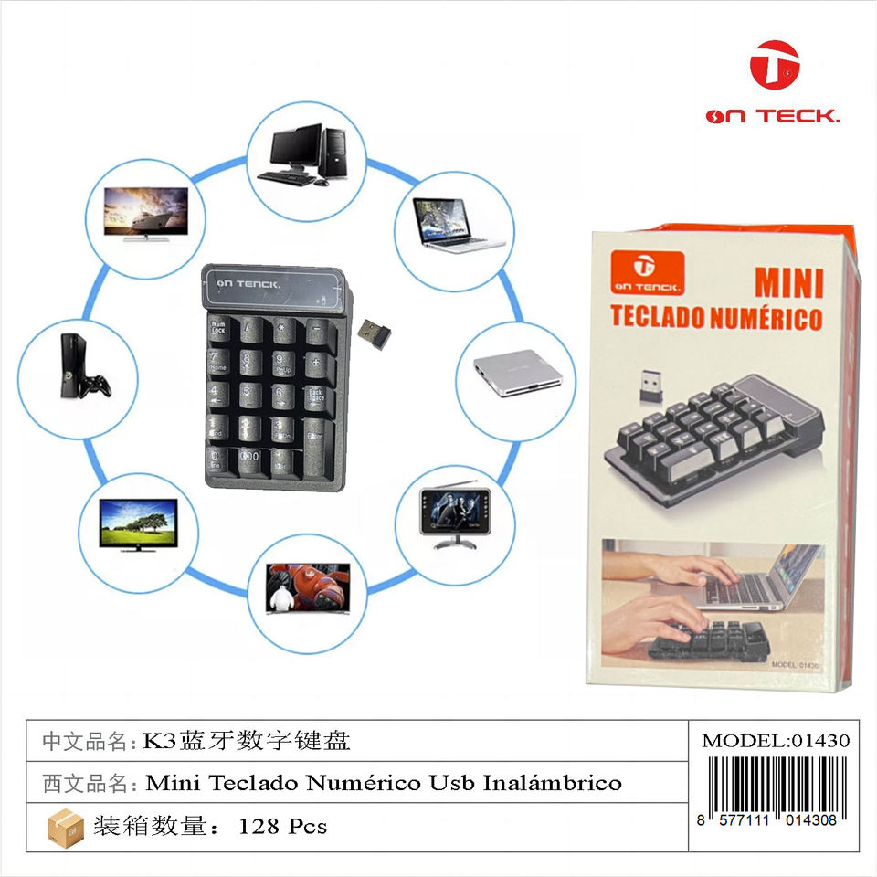 แป้นพิมพ์ตัวเลขบลูทูธ OntecK 1430 แบบไร้สาย ชาร์จได้ ดีไซน์บาง พกพาสะดวก สำหรับใช้ในสำนักงาน