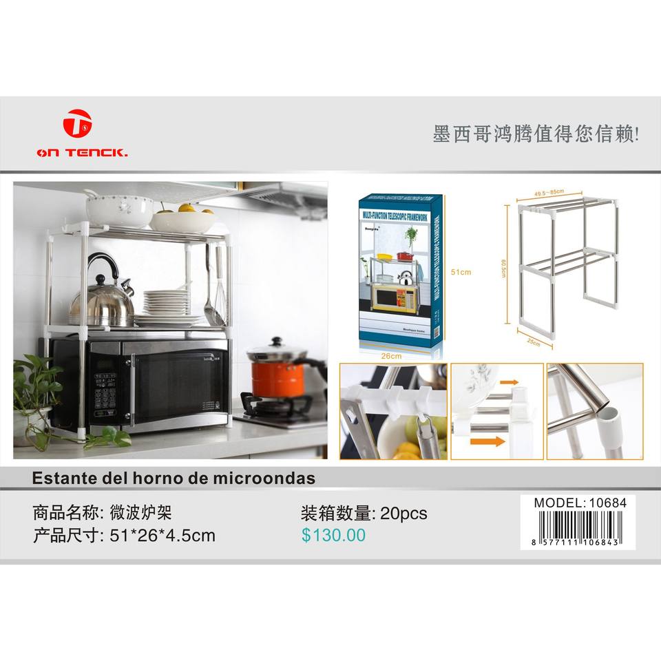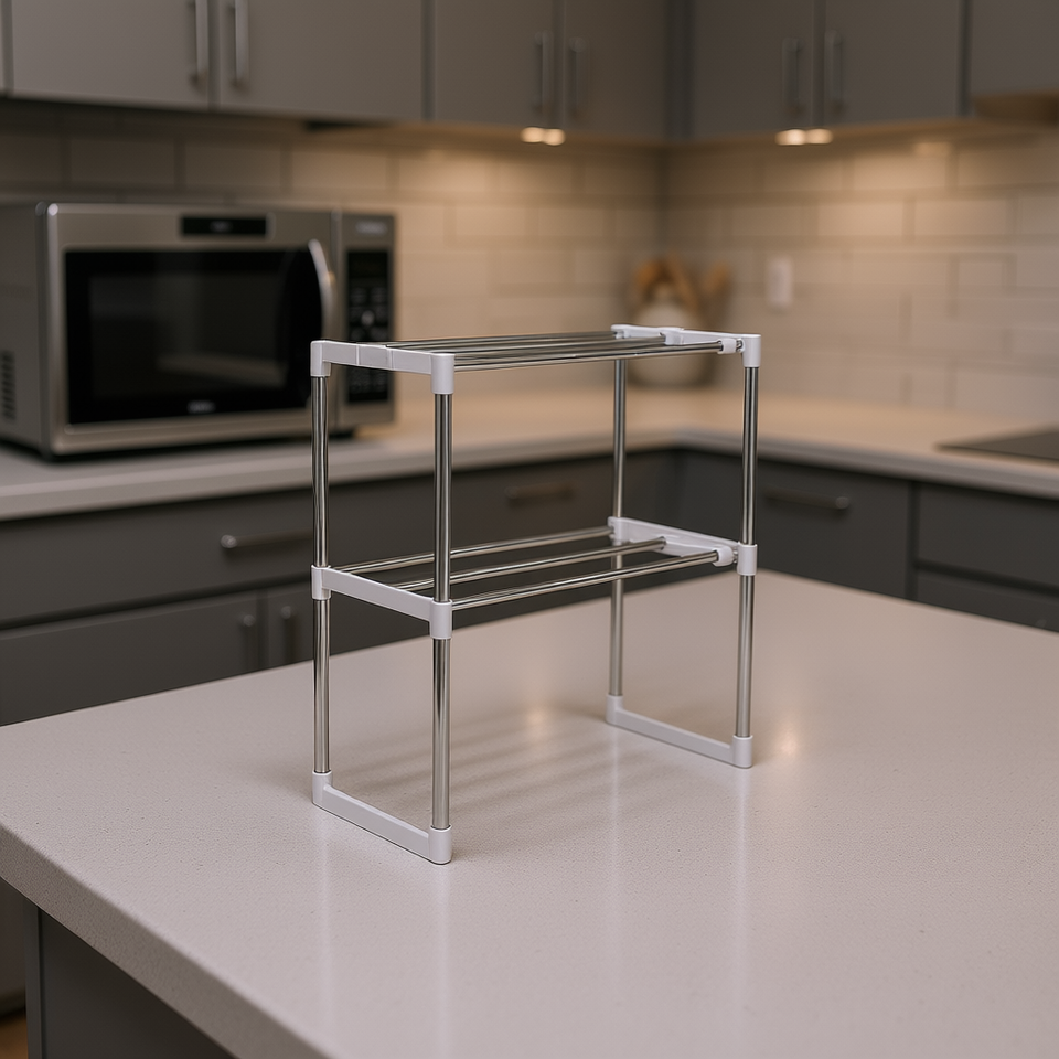 ชั้นวางเตาอบไมโครเวฟออนเทค ชั้นวางโลหะสองชั้นสำหรับจัดเก็บในครัว ทนทาน ดีไซน์เรียบง่าย