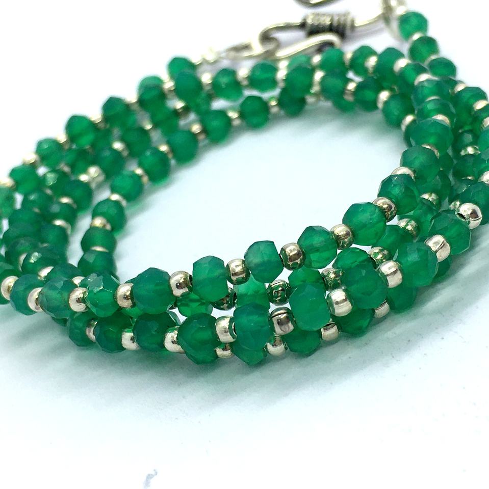 สร้อยคอพลอยคาลซิโดนีสีเขียวโอนิกซ์แบบเจียระไนแบบเหลี่ยมเพชรพลอยธรรมชาติรูปทรงสร้อยลูกปัดแบบคลาสสิก