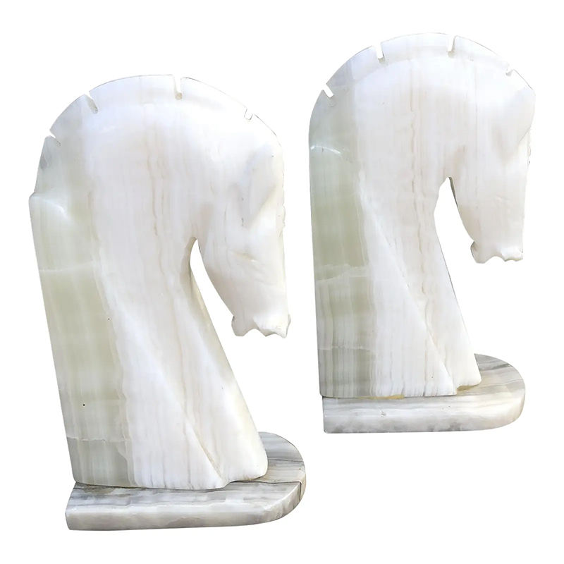 ที่กั้นหนังสือรูปม้าทำจากหินอ่อนออนิกซ์ ดีไซน์ทันสมัย ขัดเงา หินแคลไซต์หลากสี ของขวัญงานศิลปะ ใช้ตั้งพื้น