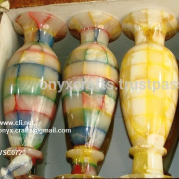 Onyx Stone & Marble Flower Vases With Patchwork Design