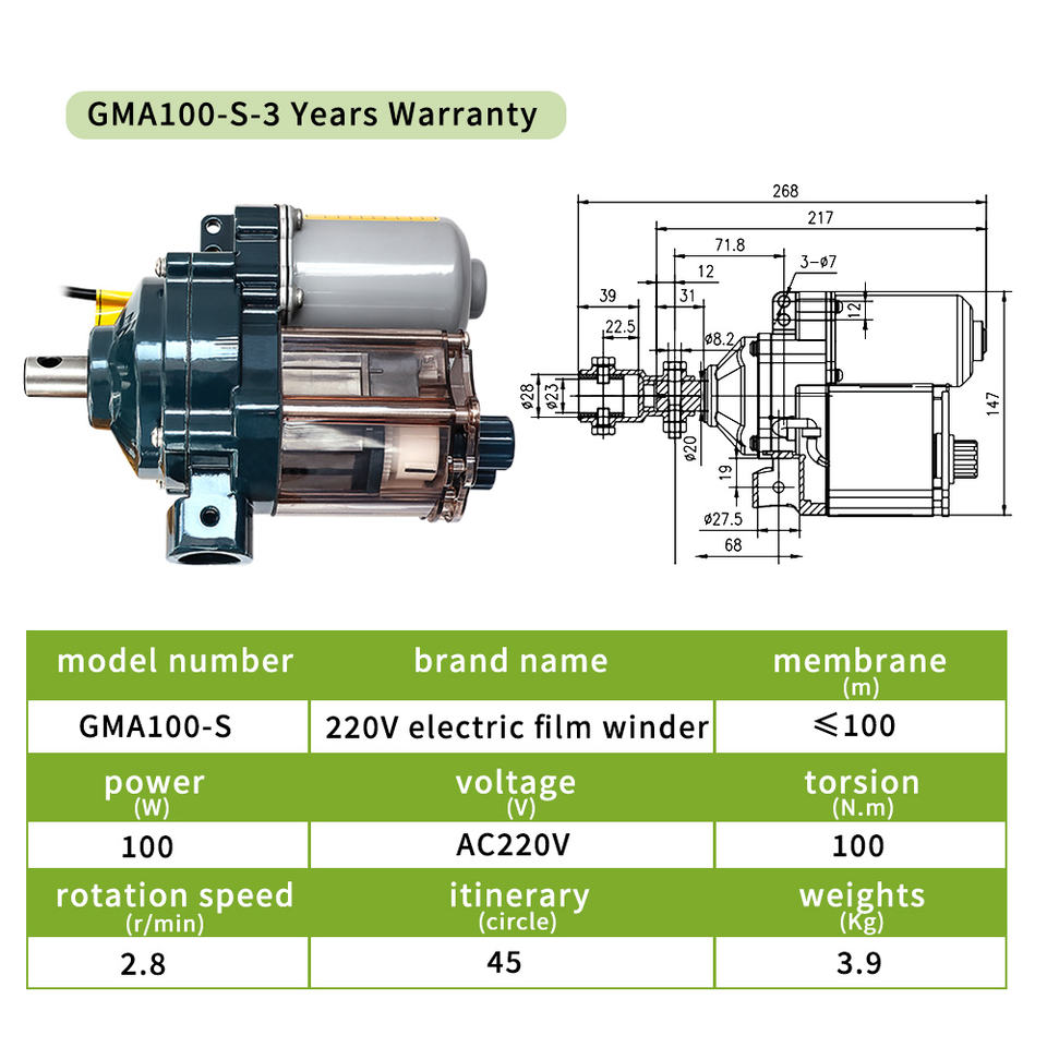 Oone มอเตอร์ฟิล์ม GMA 24V มอเตอร์ระบายอากาศเรือนกระจกและตัวควบคุมหน่วยไฟฟ้า
