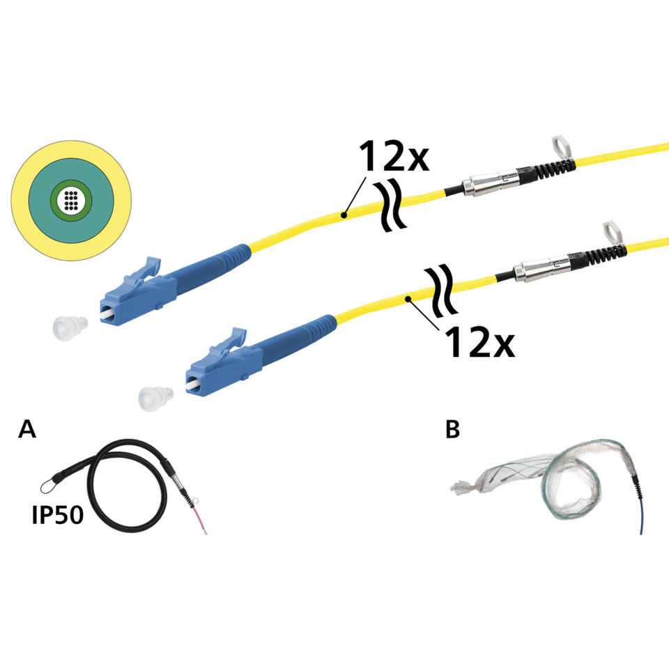 OpDAT VIK Universal 12xOS2 LC-LC Communication Cable 100 m with One-Sided Pulling Aid IP50