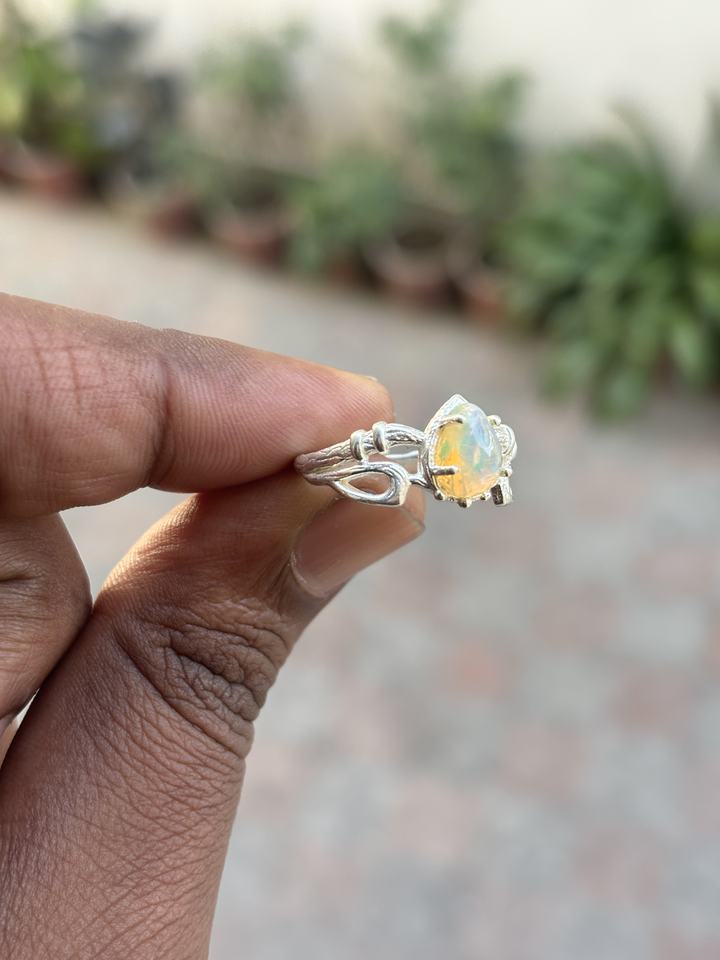 แหวนโอปอลสำหรับเป็นของขวัญหมั้น รูปทรงพีซ เงินแท้ 925 คุณภาพระดับ AAA งานแฮนด์เมด ตัวเรือนแบบฝังขอบ ดีไซน์คลาสสิกสไตล์วินเทจ