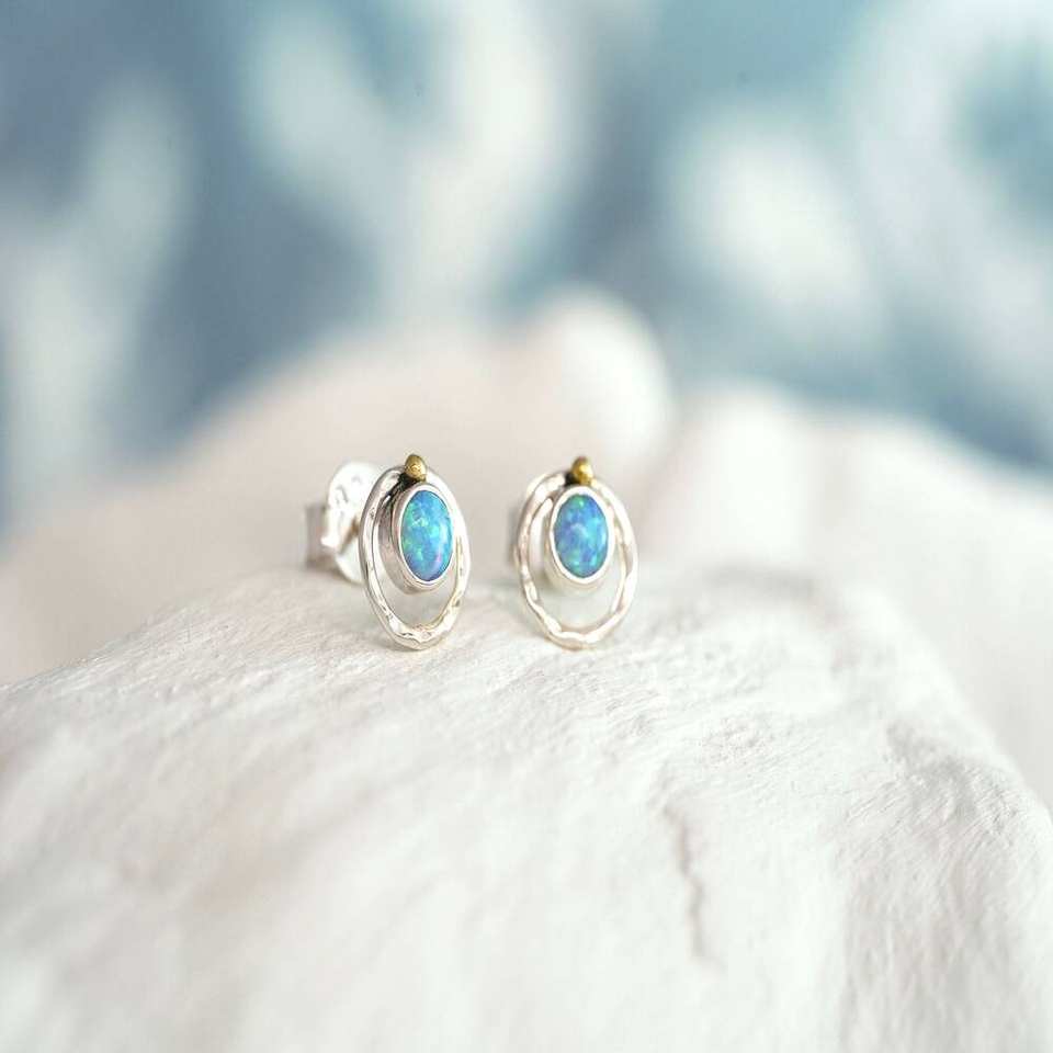 ต่างหูสตั๊ดโอปอลต่างหูโอปอลทำด้วยมือสวยงามต่างหูเงินแท้ต่างหูโอปอลเครื่องประดับโอปอลสวยงาม