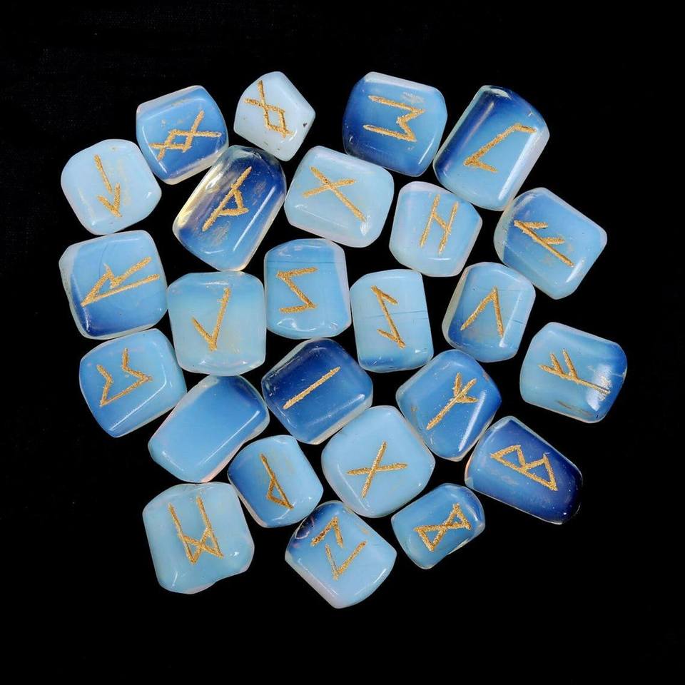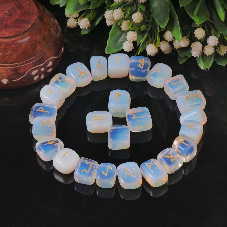 หินโอปอลแกะสลัก25ชิ้นสำหรับผู้สูงอายุ Futhark Rune แกะสลักด้วยมือหินโอปอลสำหรับการรักษาจักระวัดความสมดุลของหินฮวงจุ้ยคริสตัล