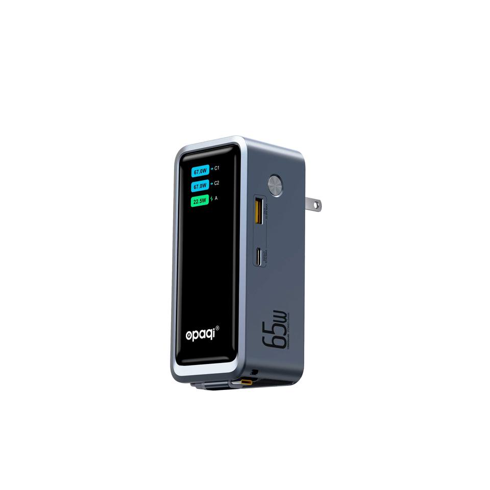 Opaqi 65W 10000mAh High-Capacity Power Bank with Built-in Plug, Dual USB-C & USB-A Ports