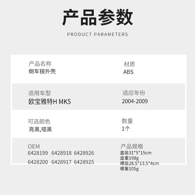 Opel Astra Side Mirror Housing Black ABS Replacement Car Parts 2004-2009 Left Right Fitment