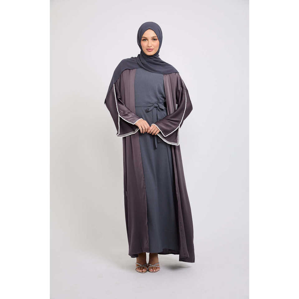 ชุดอะบายาแบบเรียบง่ายแขนอันโอชะมีรายละเอียดสี่ชิ้นสีเถ้าสีม่วง
