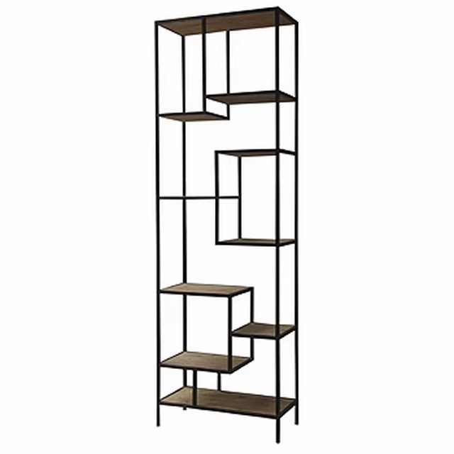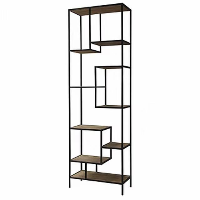 ชั้นหนังสือแบบเปิด9ชั้นที่ทันสมัยชั้นวางหนังสือไม้ทรงสูงพร้อมจอแสดงผลแบบอุตสาหกรรมสีดำสำหรับห้องนอนห้องนั่งเล่นสำนักงาน