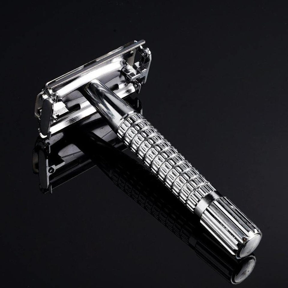 มีดโกนแบบเปิด/ปิด ใบมีดสองคม สำหรับมืออาชีพและผู้เริ่มต้น ใช้โกนขนตามร่างกาย/ใบหน้า/บิกินี่ ใช้ซ้ำได้ ทำจากสแตนเลส