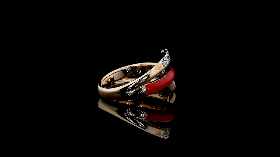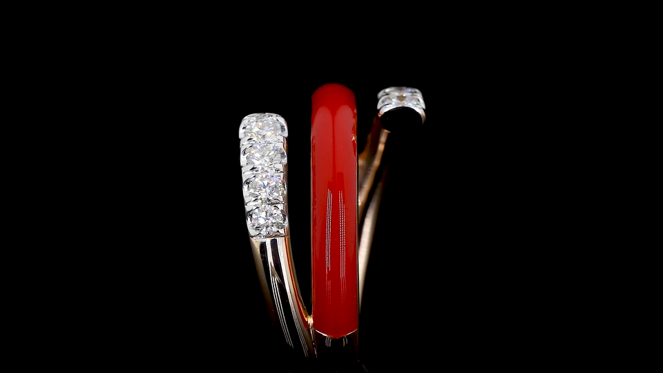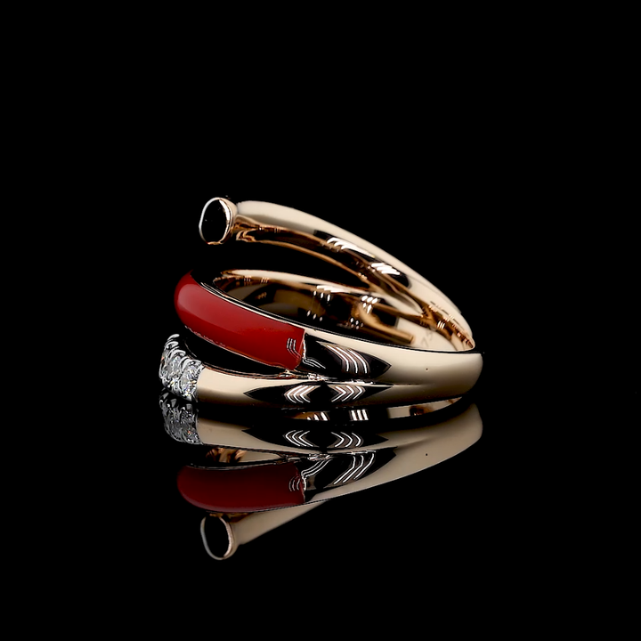 แหวนเปิดขอบประดับด้วยเคลือบสีแดงและเพชรเลี้ยงในห้องปฏิบัติการ | แหวนหรูหราทันสมัยสำหรับทุกวัน | แหวนสวยงาม