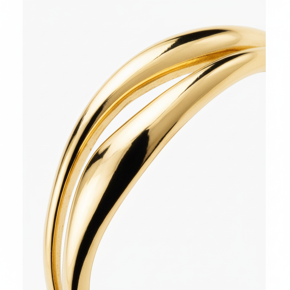 แหวนเปิดวงรูปทรงเรขาคณิตประดับเพชรทรงปรินเซสคัท ดีไซน์ทันสมัย ชุบทอง 18K และโรเดียม ผลิตจากไทเทเนียมและทองแดง