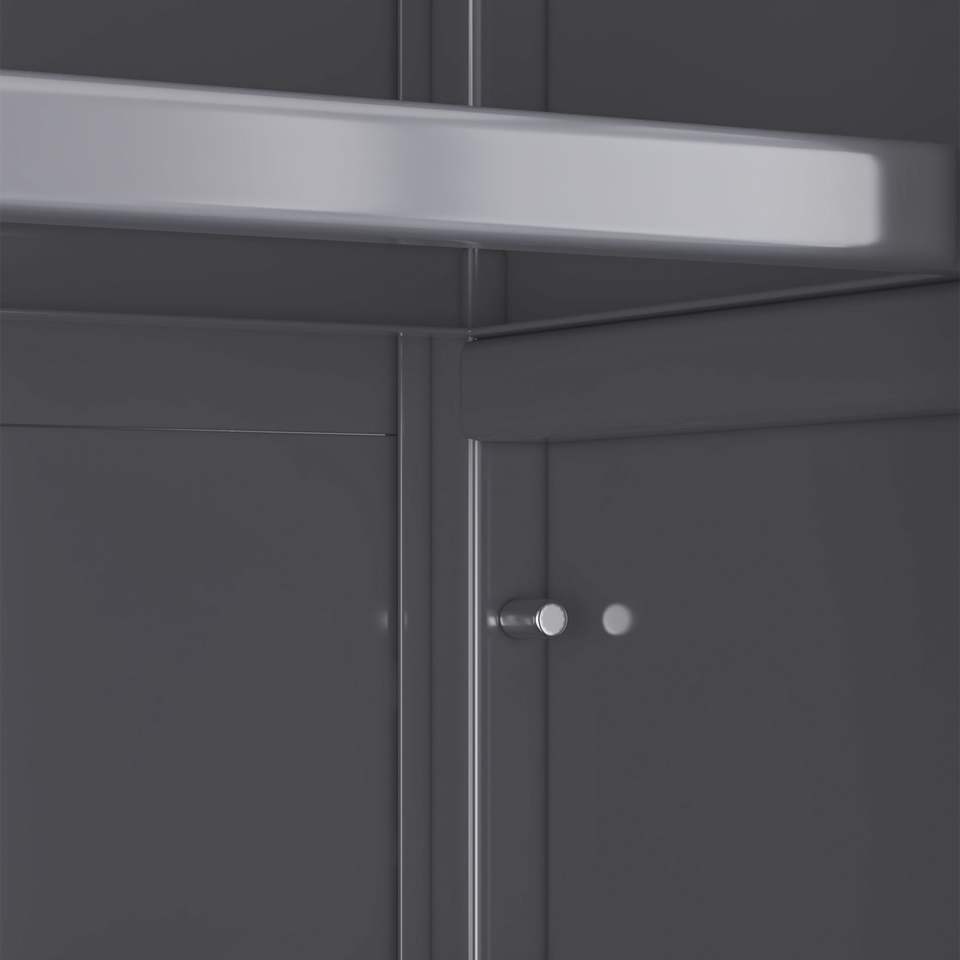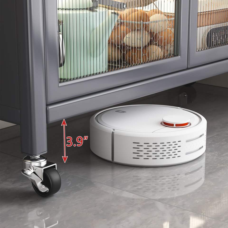 ตู้ครัวแบบเปิดหลายชั้นสำหรับจัดเก็บไมโครเวฟในครัวเรือน พร้อมช่องเก็บของด้านข้าง จัดระเบียบตั้งแต่พื้นถึงเพดาน