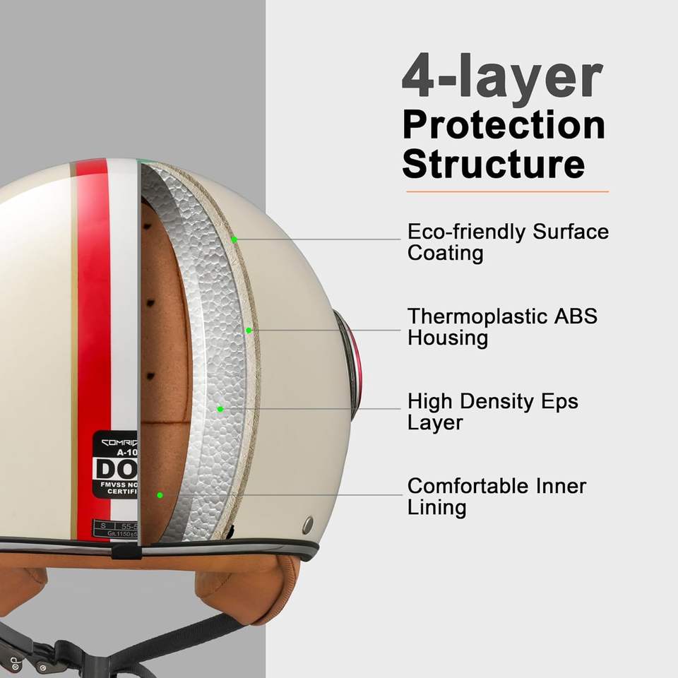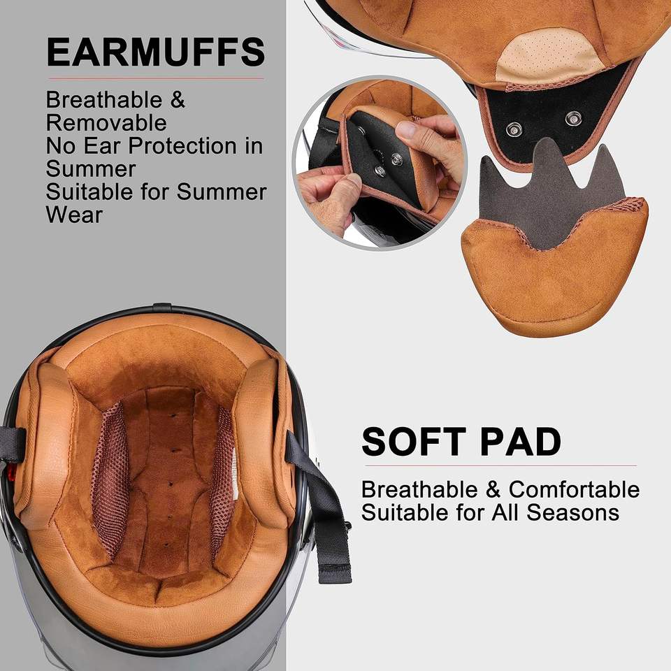 หมวกกันน็อคแบบเปิดหน้าสำหรับผู้ใหญ่, หมวกกันน็อคแบบครึ่งหน้าสำหรับผู้ชายและผู้หญิง, หมวกกันน็อคแบบ 3/4 สไตล์เรโทรสำหรับเวสป้า