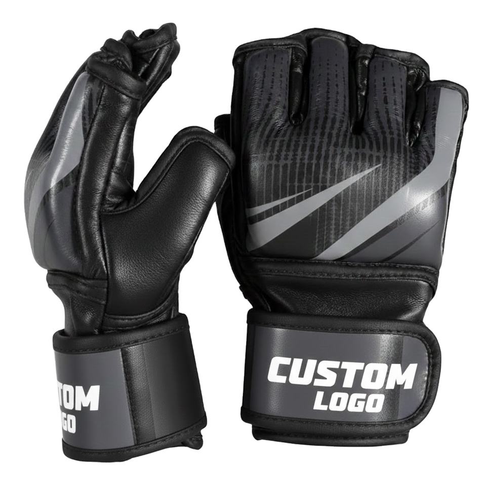 ถุงมือฝึกซ้อม MMA แบบเปิดนิ้ว หนัง PU พร้อมที่รัดข้อมือ