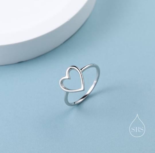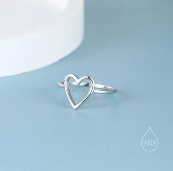 แหวนรูปหัวใจเปิดในแหวนเงินแท้แบบเรียบง่ายทำจากเงินแท้